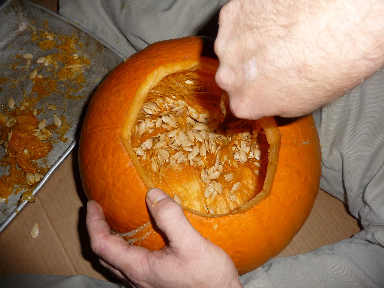 I mean, please meet Jack, CJ's Jack-o-Lantern. She documented the process by taking pictures herself. She used a window cling as her inspiration and had a bit of help from Daddy: